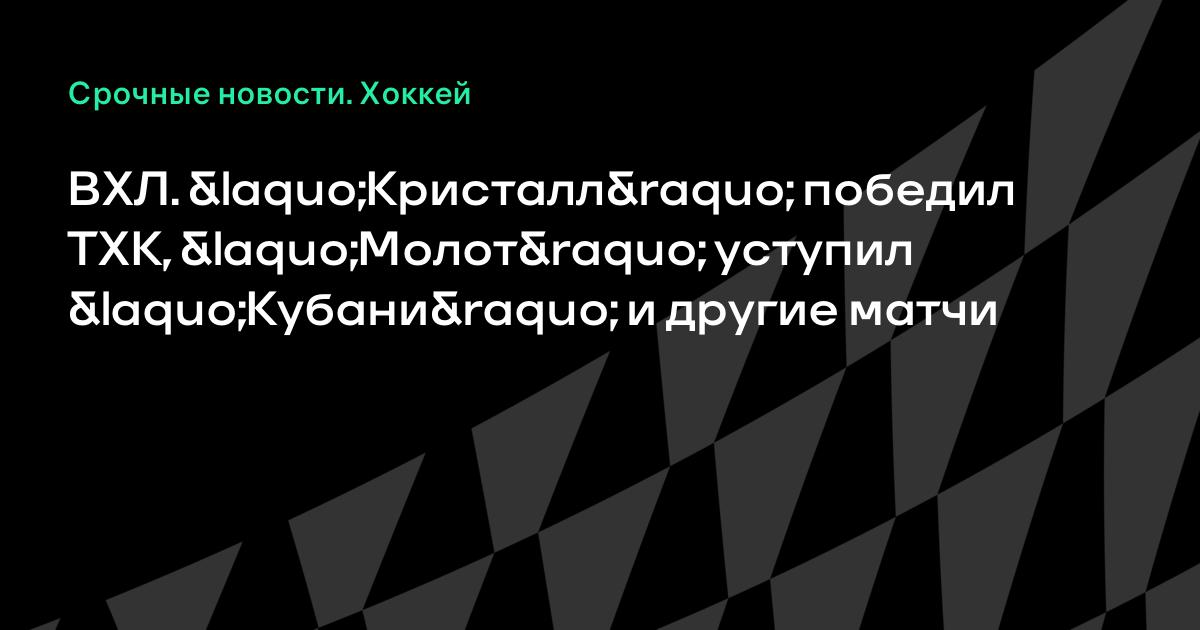 ВХЛ. «Кристалл» победил ТХК, «Молот» уступил «Кубани» и другие матчи