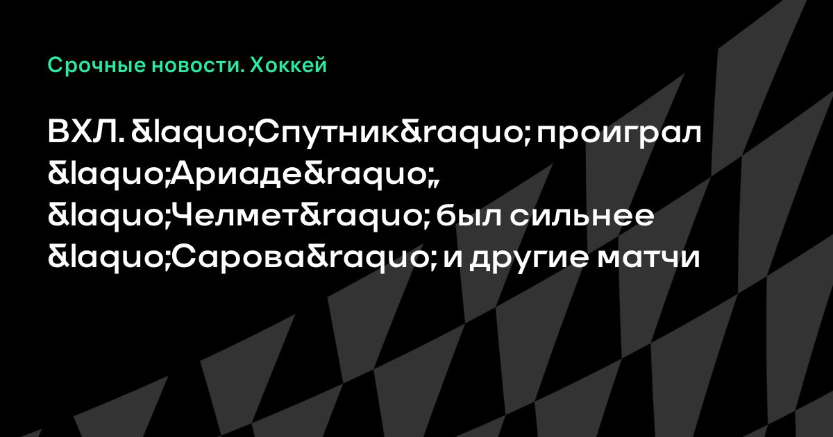 ВХЛ. «Спутник» проиграл «Ариаде», «Челмет» был сильнее «Сарова» и другие матчи
