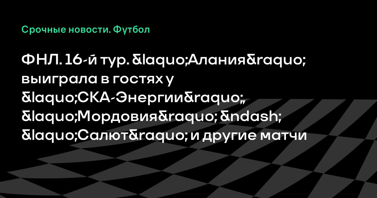 ФНЛ. 16-й тур. «Алания» выиграла в гостях у «СКА-Энергии», «Мордовия» – «Салют» и другие матчи