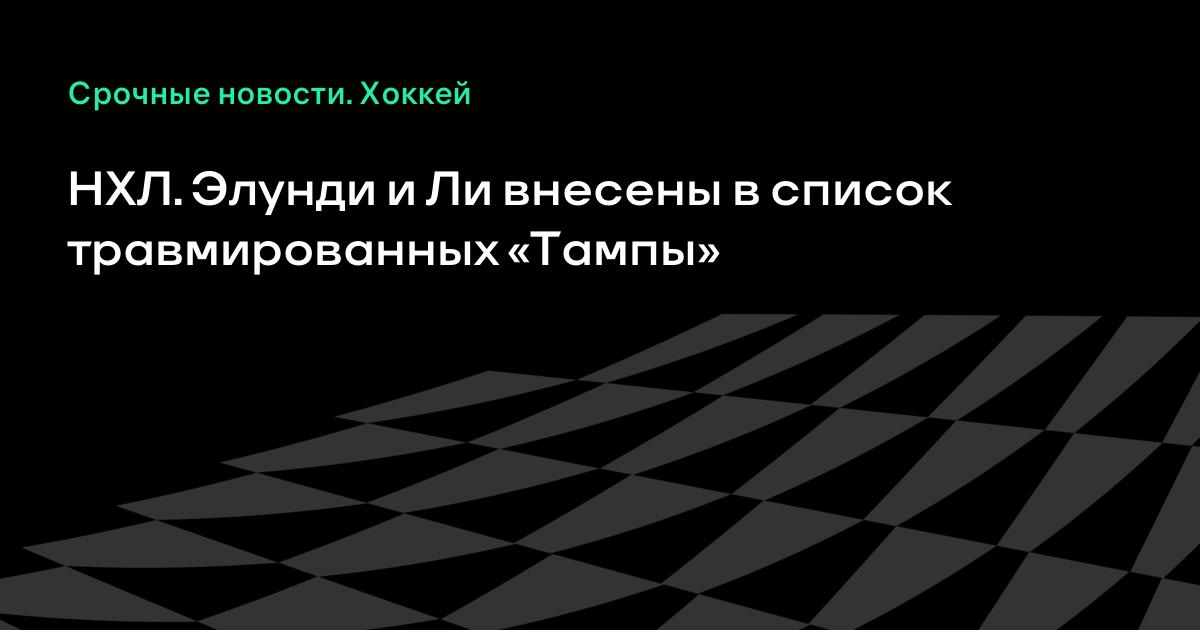 НХЛ. Элунди и Ли внесены в список травмированных «Тампы»