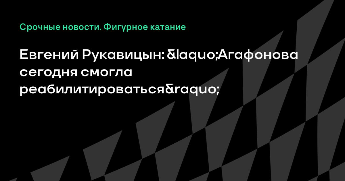 Евгений Рукавицын: «Агафонова сегодня смогла реабилитироваться»