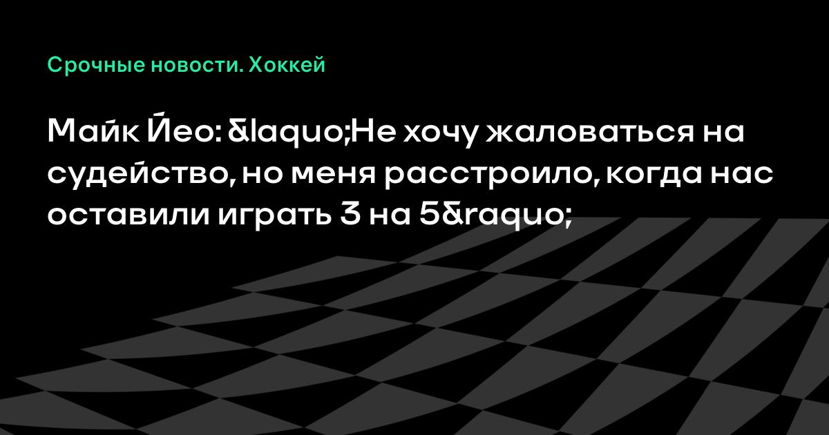 Главный тренер «Миннесоты» Майк Йео отметил, что спорное судейство помешало его команде набрать очки в матче с «Нэшвиллом» (2:3).«Я был очень расстроен, когда нас заставили играть 3 на 5. Я не хочу жаловаться на спорные удаления или что-то в этом роде, но нас поставили в очень тяжелое положение, и – бум-бум – мы получаем 2 шайбы в наши ворота.