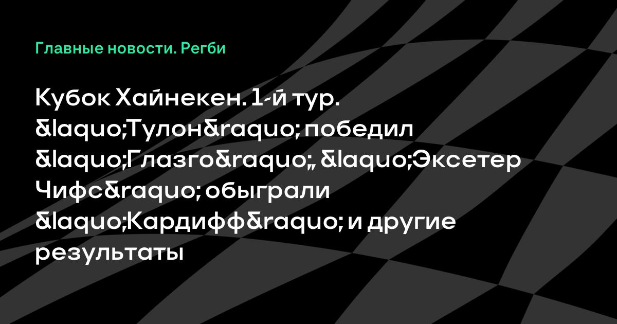 Кубок Хайнекен. 1-й тур. «Тулон» победил «Глазго», «Эксетер Чифс» обыграли «Кардифф» и другие результаты