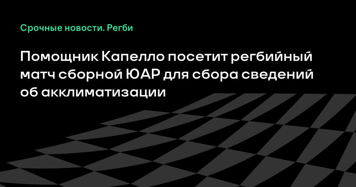 Помощник Капелло посетит регбийный матч сборной ЮАР для сбора сведений об акклиматизации