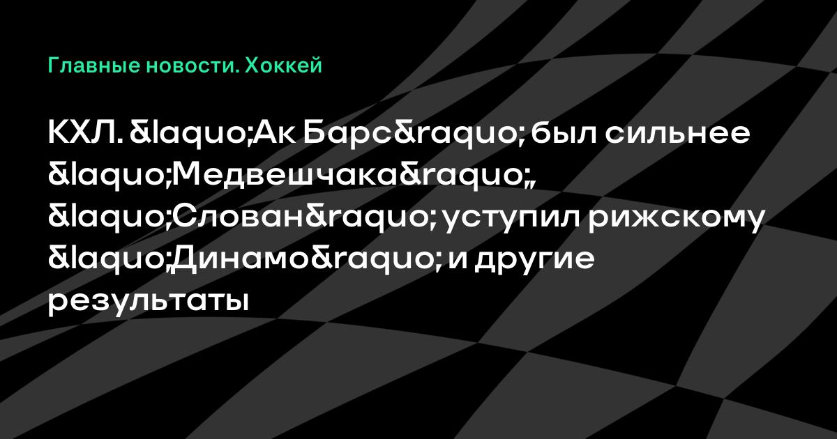 КХЛ. «Ак Барс» был сильнее «Медвешчака», «Слован» уступил рижскому «Динамо» и другие результаты