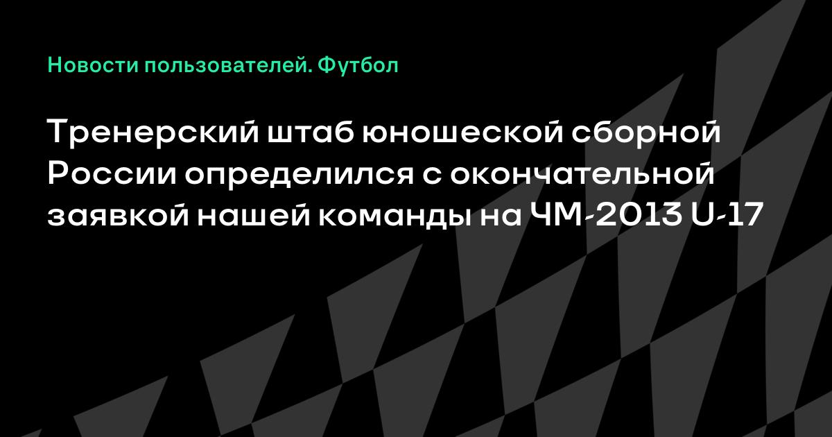 Тренерский штаб юношеской сборной России (игроки 1996 г.р.) во главе с Дмитрием Хомухой определился с окончательной заявкой нашей команды на ЧМ-2013 U-17 в ОАЭ (17 октября – 8 ноября).