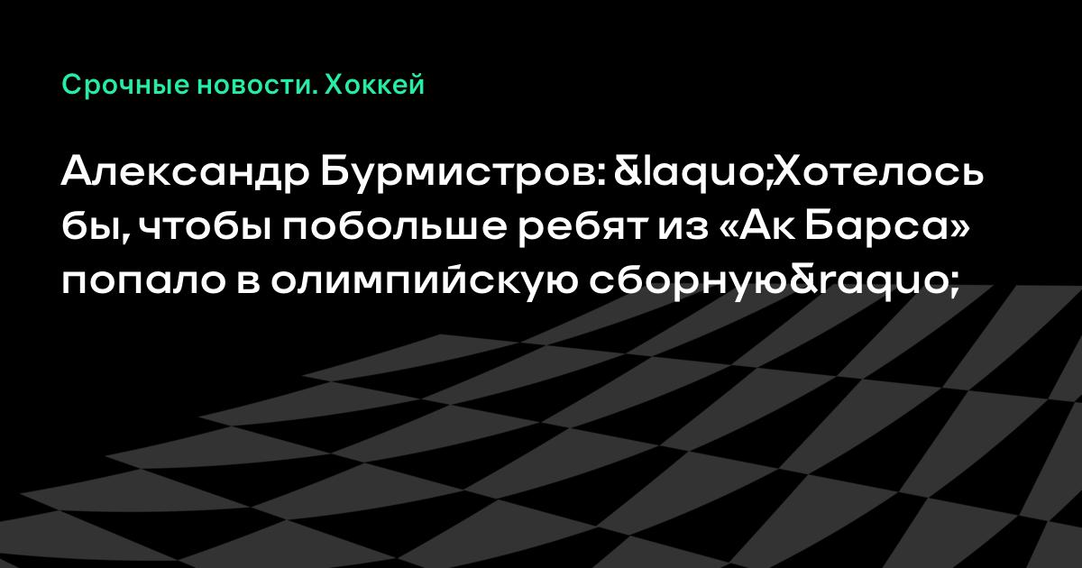 Александр Бурмистров: «Хотелось бы, чтобы побольше ребят из «Ак Барса» попало в олимпийскую сборную»