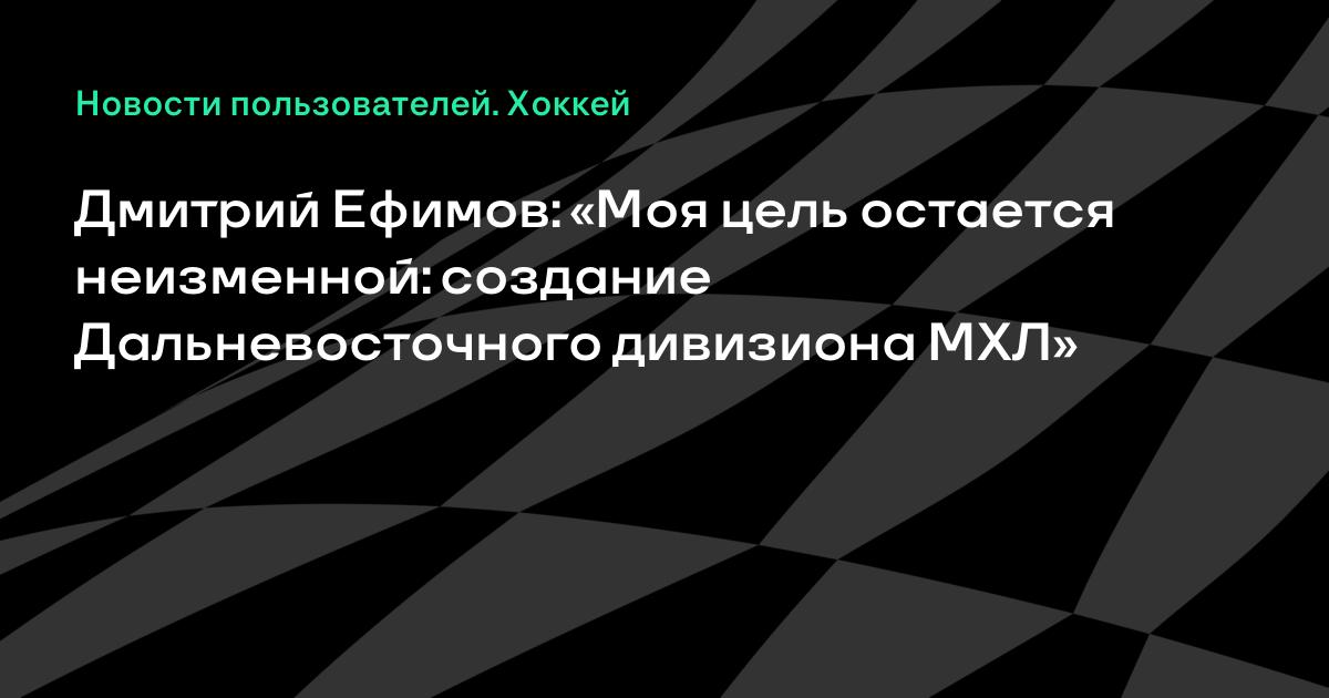 Моя цель остается неизменной: создание Дальневосточного дивизиона МХЛ. А для этого необходимо, чтобы там было как минимум четыре российские команды. А к ним уже вовсю готовы добавиться коллективы из Японии, Китая и Южной Кореи», — заявил Ефимов.