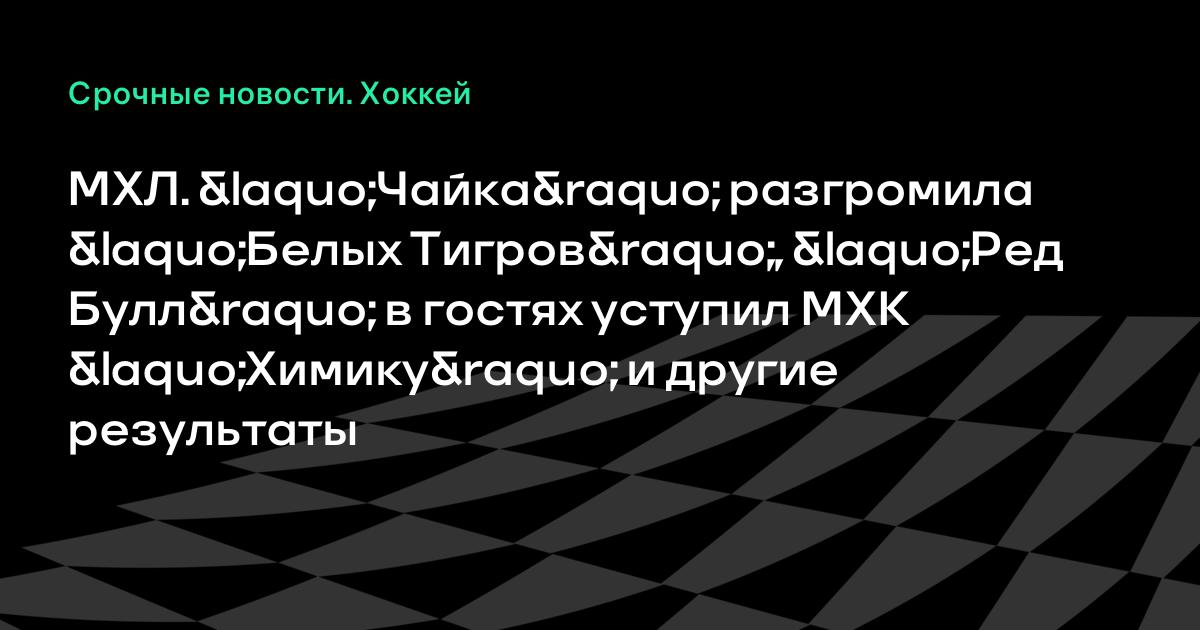 МХЛ. «Чайка» разгромила «Белых Тигров», «Ред Булл» в гостях уступил МХК «Химику» и другие результаты