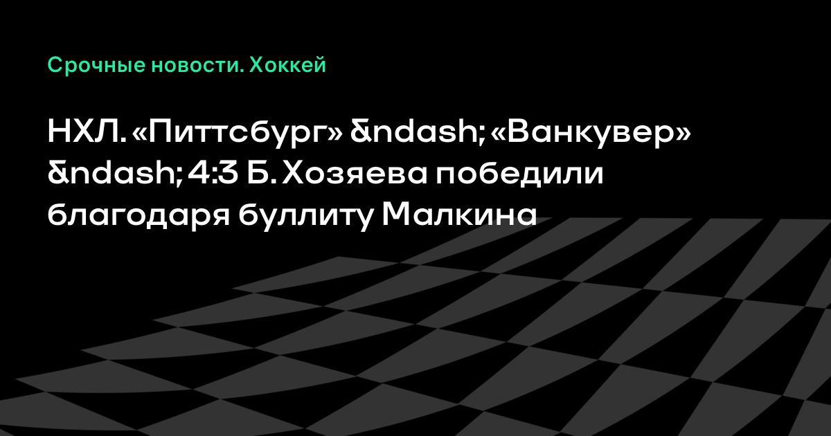 Сегодня в регулярном чемпионате НХЛ «Питтсбург» одолел «Ванкувер» в серии буллитов (4:3 Б).