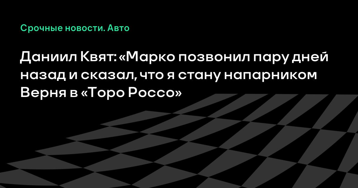 Даниил Квят: «Марко позвонил пару дней назад и сказал, что я стану напарником Верня в «Торо Россо»