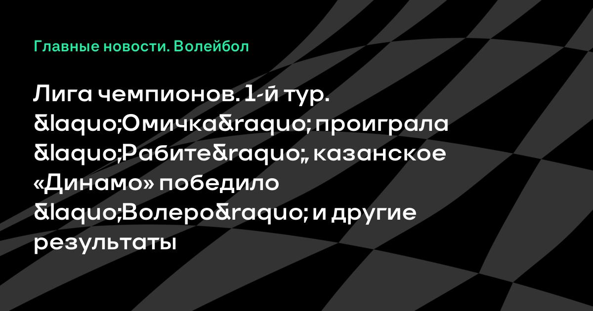 Лига чемпионов. 1-й тур. «Омичка» проиграла «Рабите», казанское «Динамо» победило «Волеро» и другие результаты