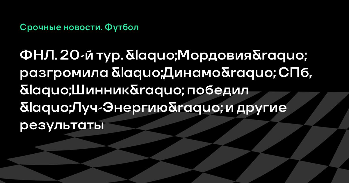 ФНЛ. 20-й тур. «Мордовия» разгромила «Динамо» СПб, «Шинник» победил «Луч-Энергию» и другие результаты