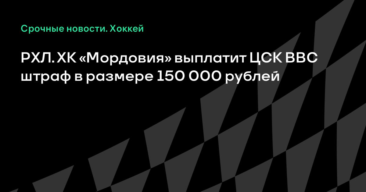 РХЛ. ХК «Мордовия» выплатит ЦСК ВВС штраф в размере 150 000 рублей