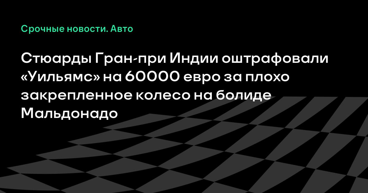 Стюарды Гран-при Индии оштрафовали команду «Уильямс» на 60000 евро за то, что механики плохо закрепили колесо на болиде Пастора Мальдонадо.