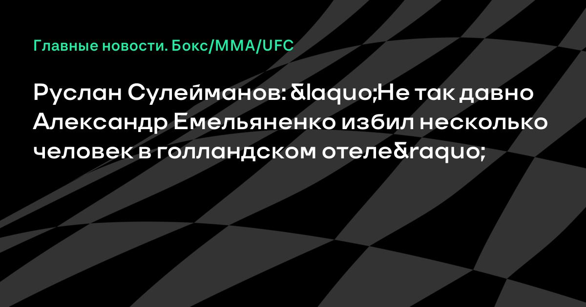 Руслан Сулейманов: «Не так давно Александр Емельяненко избил несколько человек в голландском отеле»