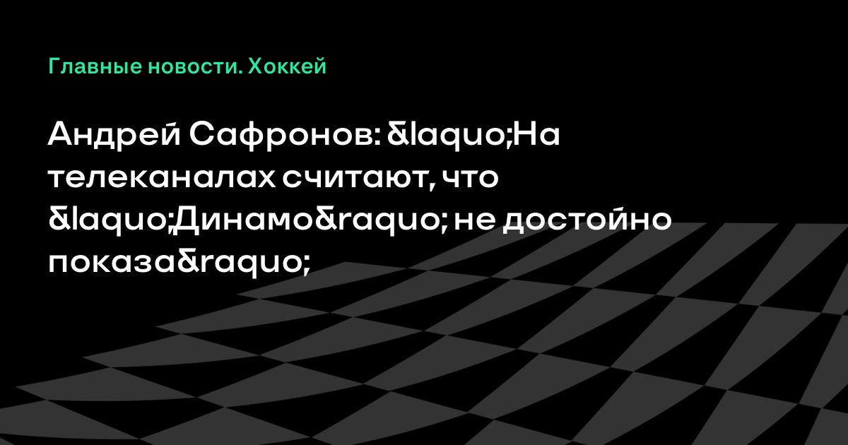 Генеральный директор «Динамо» Андрей Сафронов резко прокомментировал отсутствие матчей клуба на телеэкране.«Я не понимаю, какими критериями руководствуются «Россия 2» и КХЛ-ТВ. Играет двукратный обладатель Кубка Гагарина. В выходной день. И соперник не слабый («Динамо» играло с «Сибирью» – 5:1 – прим. Sports.ru). А нас не показывают…