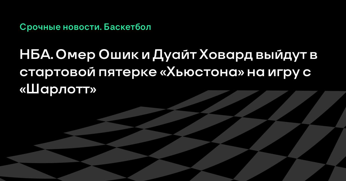 В стартовой пятерке «Рокетс» на матч с «Шарлотт» выйдут центровые Омер Ашик и Дуайт Ховард, сообщает обозреватель Houston Chronicle Джонатан Фейген. Об этом журналисту рассказал форвард техасцев Чендлер Парсонс.