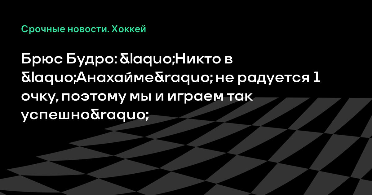 Брюс Будро: «Никто в «Анахайме» не радуется 1 очку, поэтому мы и играем так успешно»