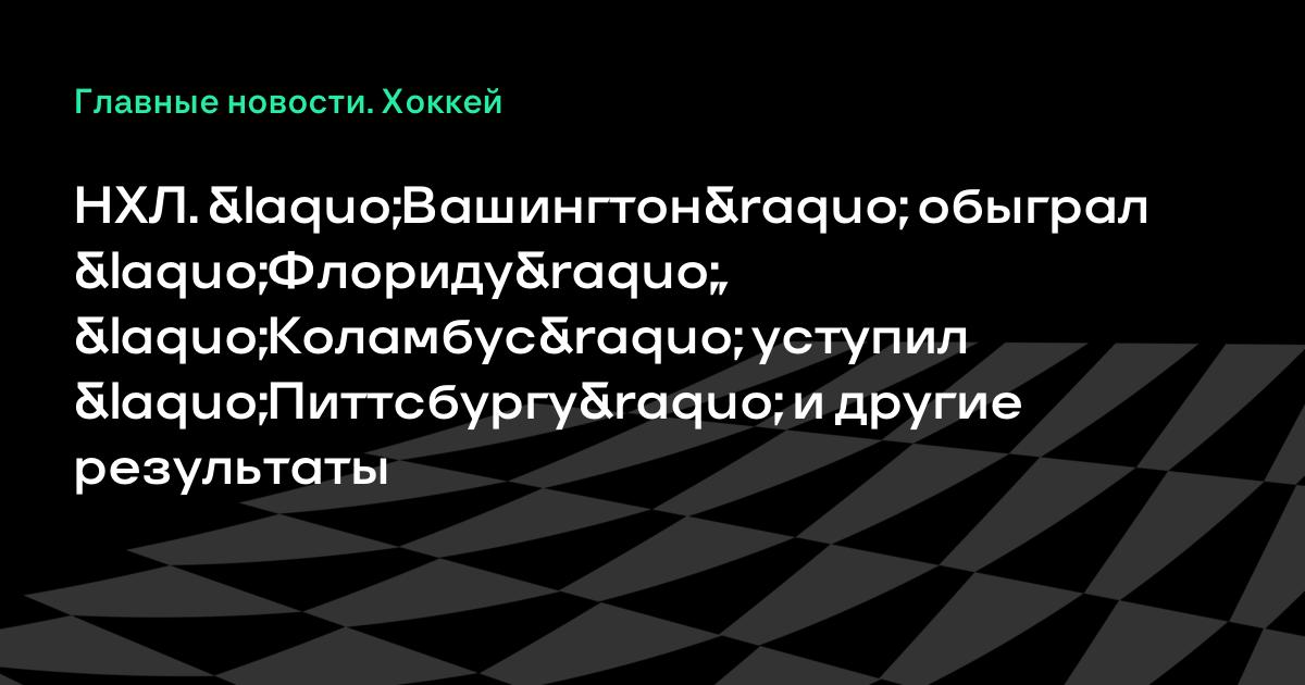 НХЛ. «Вашингтон» обыграл «Флориду», «Коламбус» уступил «Питтсбургу» и другие результаты