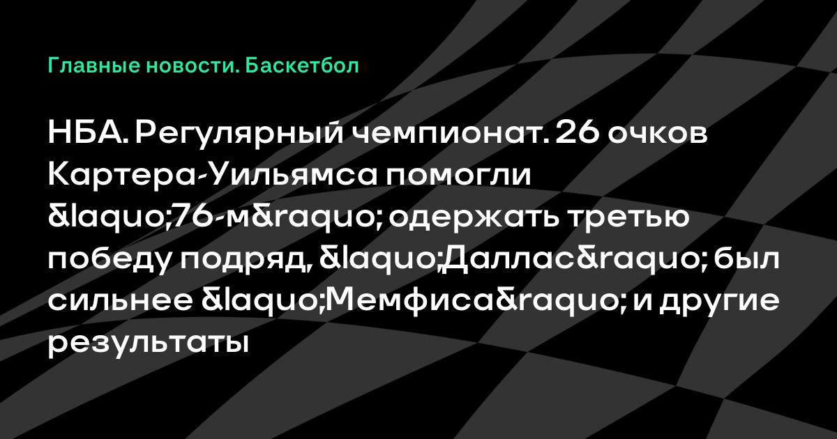 НБА. Регулярный чемпионат. 26 очков Картера-Уильямса помогли «76-м» одержать третью победу подряд, «Даллас» был сильнее «Мемфиса» и другие результаты