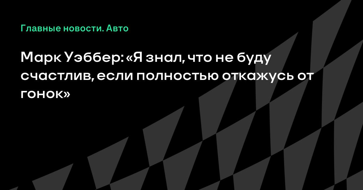 Марк Уэббер: «Я знал, что не буду счастлив, если полностью откажусь от гонок»