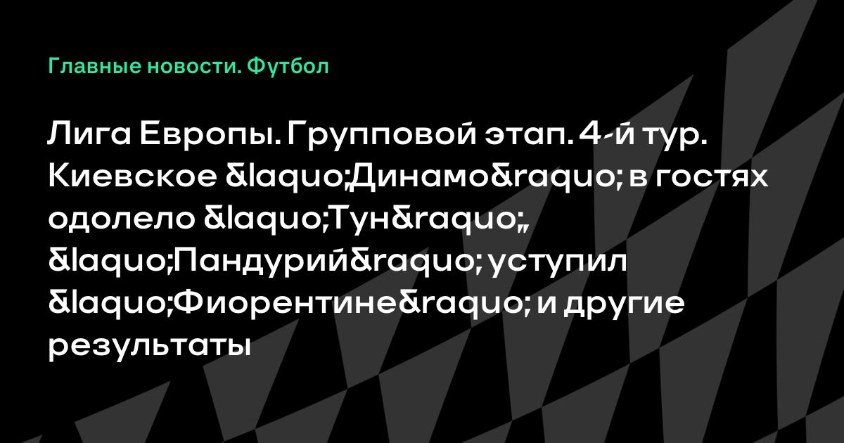Лига Европы. Групповой этап. 4-й тур. Киевское «Динамо» в гостях одолело «Тун», «Пандурий» уступил «Фиорентине» и другие результаты