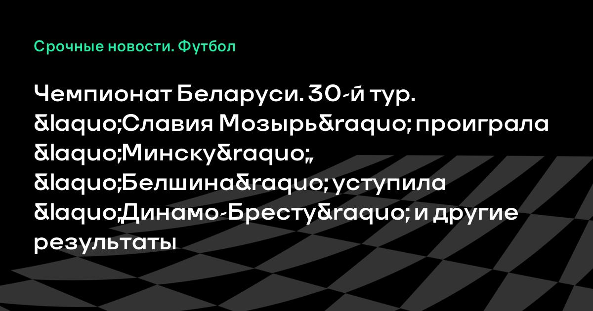 Чемпионат Беларуси. 30-й тур. «Славия Мозырь» проиграла «Минску», «Белшина» уступила «Динамо-Бресту» и другие результаты