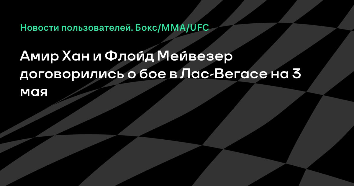 Бывший чемпион мира британец Амир Хан и лучший боксёр вне зависимости от весовых категорий Флойд Мейвезер-младший договорились о проведении поединка 3 мая в Лас-Вегасе, утверждает Daily Express.