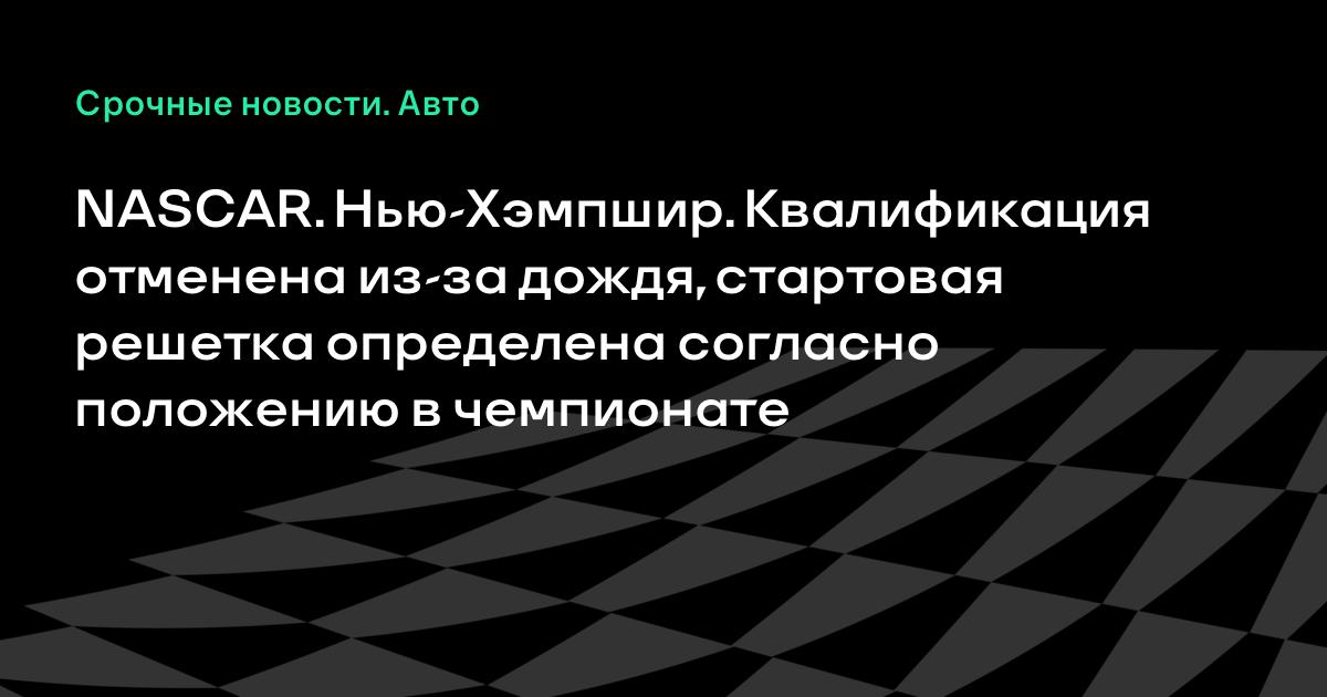 NASCAR. Нью-Хэмпшир. Квалификация отменена из-за дождя, стартовая решетка определена согласно положению в чемпионате
