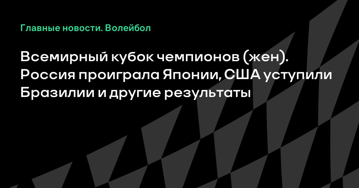 Всемирный кубок чемпионов (жен). Россия проиграла Японии, США уступили Бразилии и другие результаты