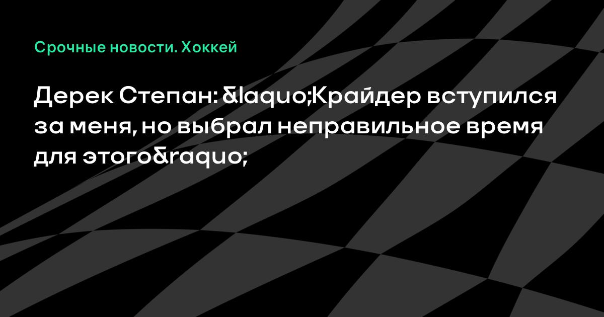 Дерек Степан: «Крайдер вступился за меня, но выбрал неправильное время для этого»