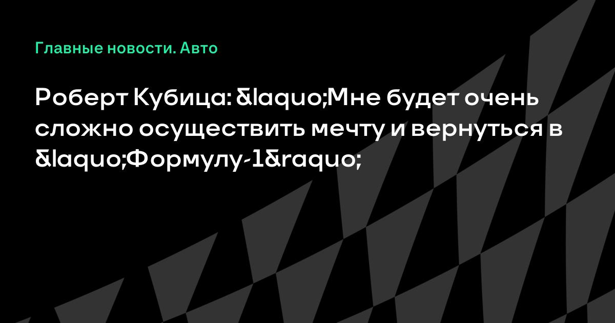 Бывший пилот «Формулы-1» Роберт Кубица, по итогам сезона завоевавший чемпионский титул в WRC 2, рассказал о том, что пока не готов возвращаться в «Ф-1».