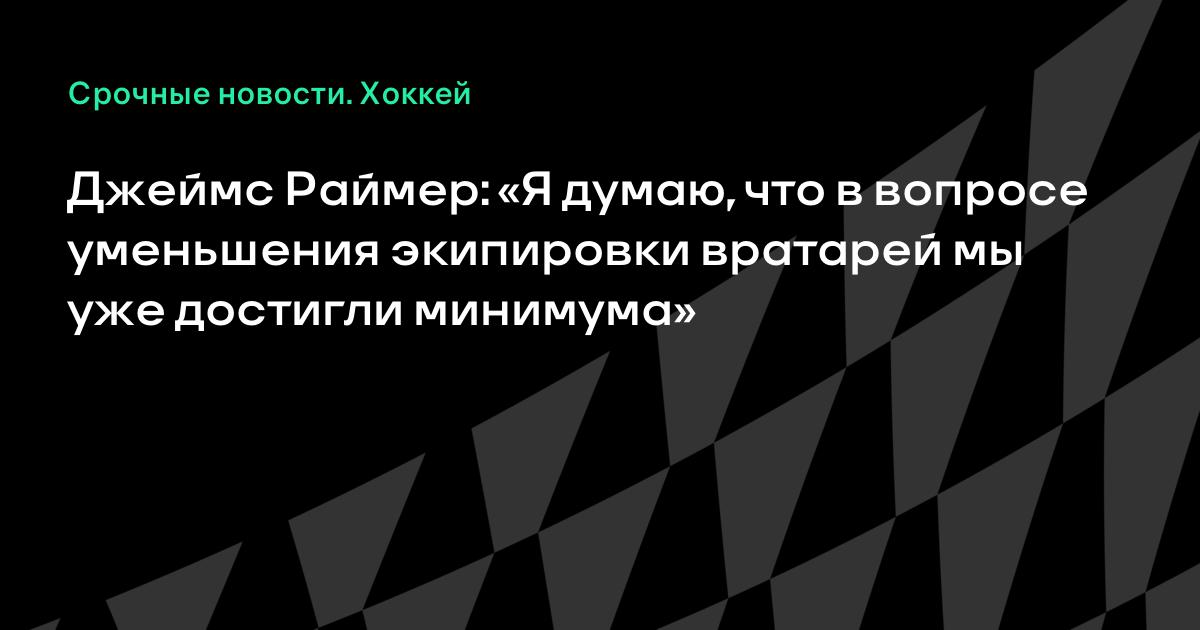 Джеймс Раймер: «Я думаю, что в вопросе уменьшения экипировки вратарей мы уже достигли минимума»