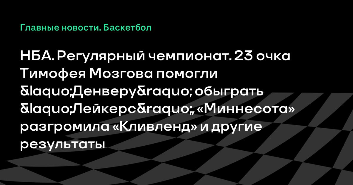 НБА. Регулярный чемпионат. 23 очка Тимофея Мозгова помогли «Денверу» обыграть «Лейкерс», «Миннесота» разгромила «Кливленд» и другие результаты