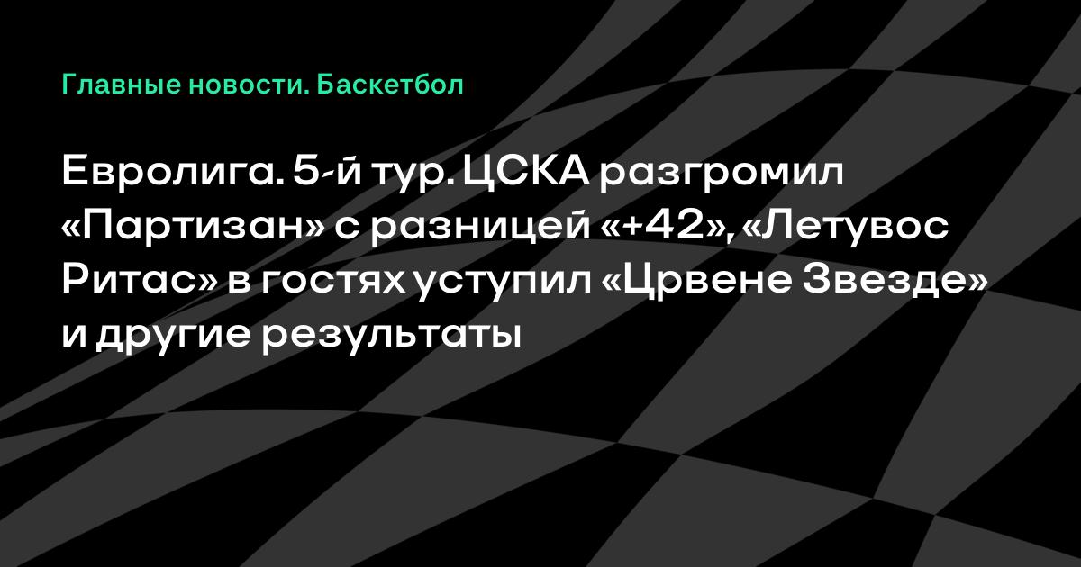 Евролига. 5-й тур. ЦСКА разгромил «Партизан» с разницей «+42», «Летувос Ритас» в гостях уступил «Црвене Звезде» и другие результаты