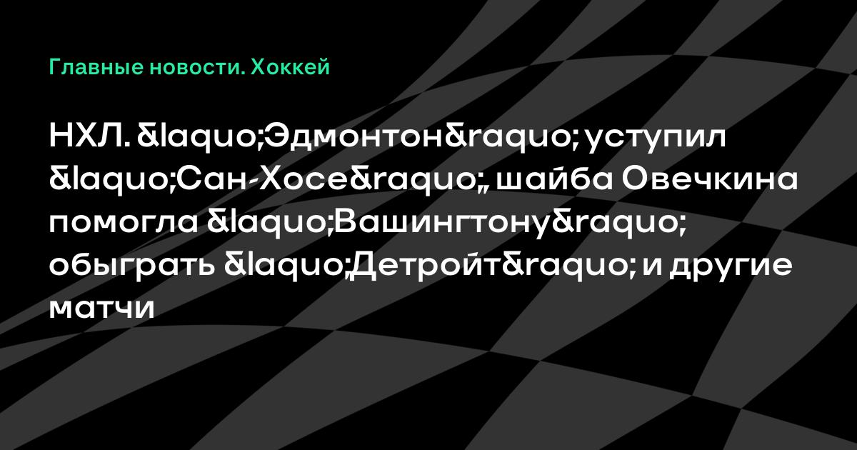 НХЛ. «Эдмонтон» уступил «Сан-Хосе», шайба Овечкина помогла «Вашингтону» обыграть «Детройт» и другие матчи