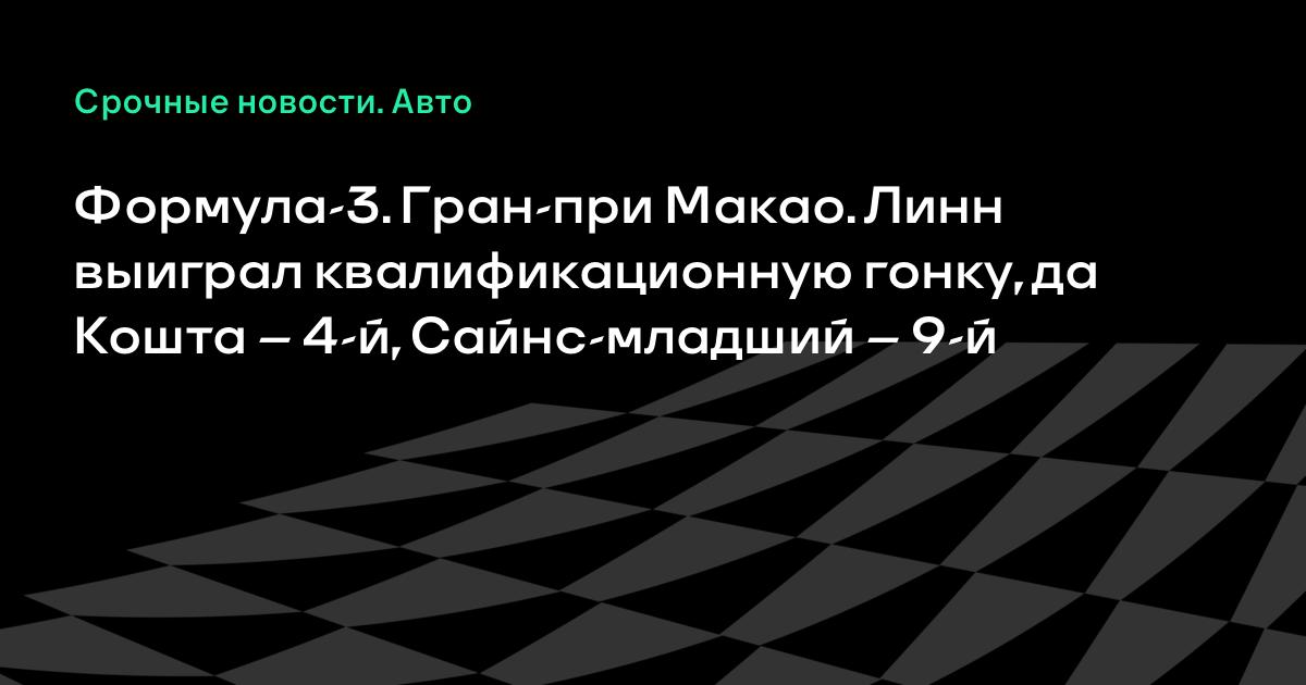 Формула-3. Гран-при Макао. Линн выиграл квалификационную гонку, да Кошта – 4-й, Сайнс-младший – 9-й