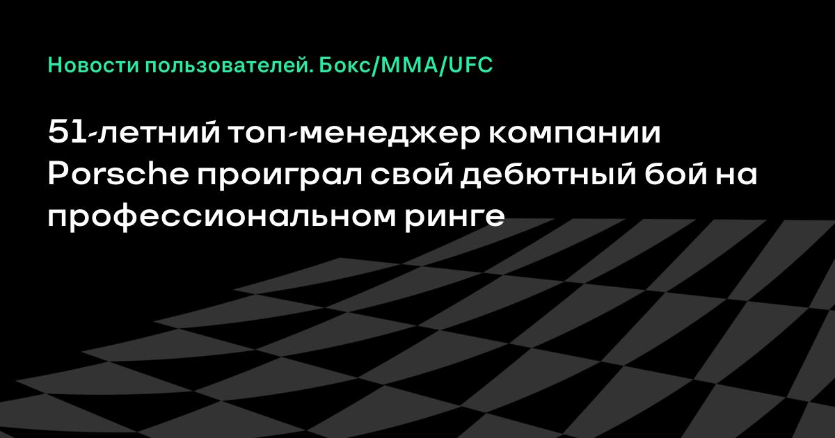 51-летний топ-менеджер компании Porsche проиграл свой дебютный бой на профессиональном ринге