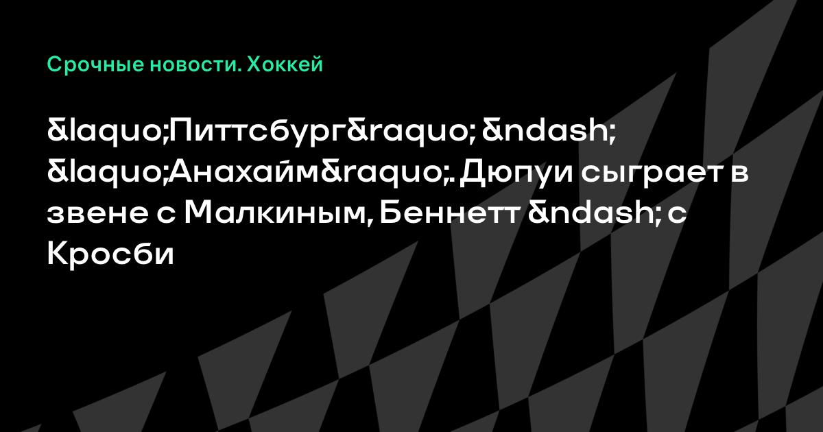 «Питтсбург» – «Анахайм». Дюпуи сыграет в звене с Малкиным, Беннетт – с Кросби