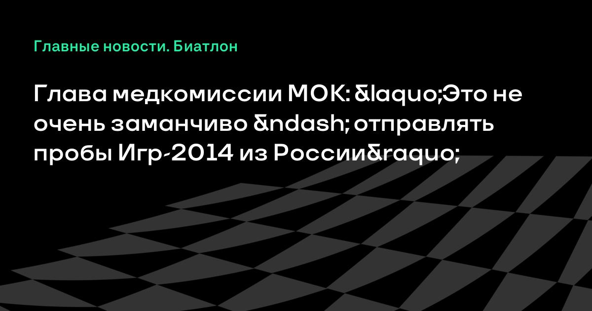Глава медкомиссии МОК: «Это не очень заманчиво – отправлять пробы Игр-2014 из России»
