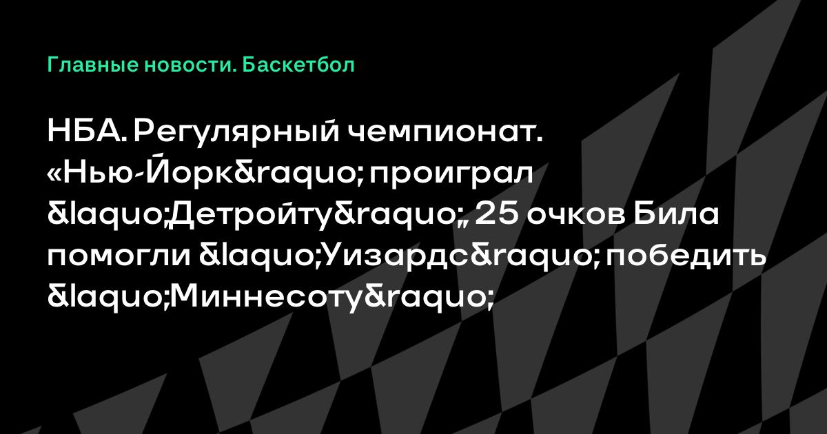 НБА. Регулярный чемпионат. «Нью-Йорк» проиграл «Детройту», 25 очков Била помогли «Уизардс» победить «Миннесоту»