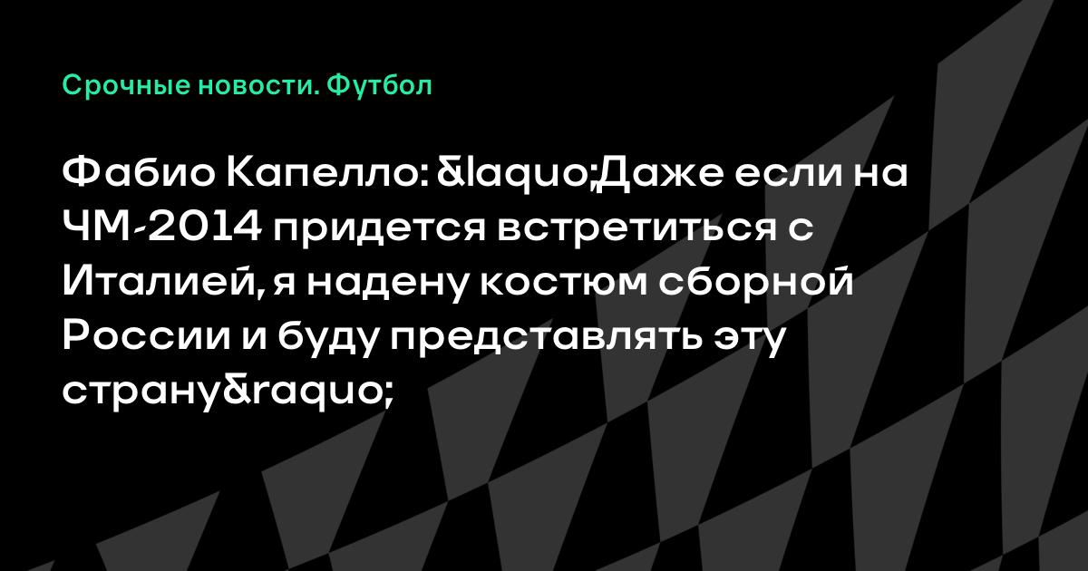 Мне не хотелось бы играть с Италией. Не хочется делить свои чувства – не могу не болеть за свою страну. Но если придется встретиться с Италией на каком-то этапе, нет проблем – я надену костюм сборной России и буду представлять эту страну. Надо – значит надо», – сказал Капелло.
