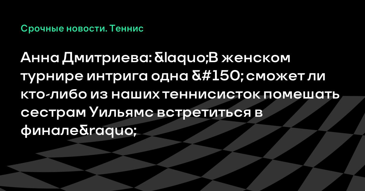 Анна Дмитриева: «В женском турнире интрига одна сможет ли кто-либо из наших теннисисток помешать сестрам Уильямс встретиться в финале»