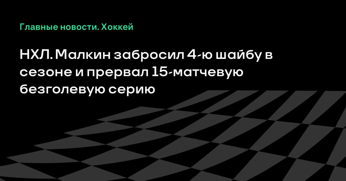 НХЛ. Малкин забросил 4-ю шайбу в сезоне и прервал 15-матчевую безголевую серию