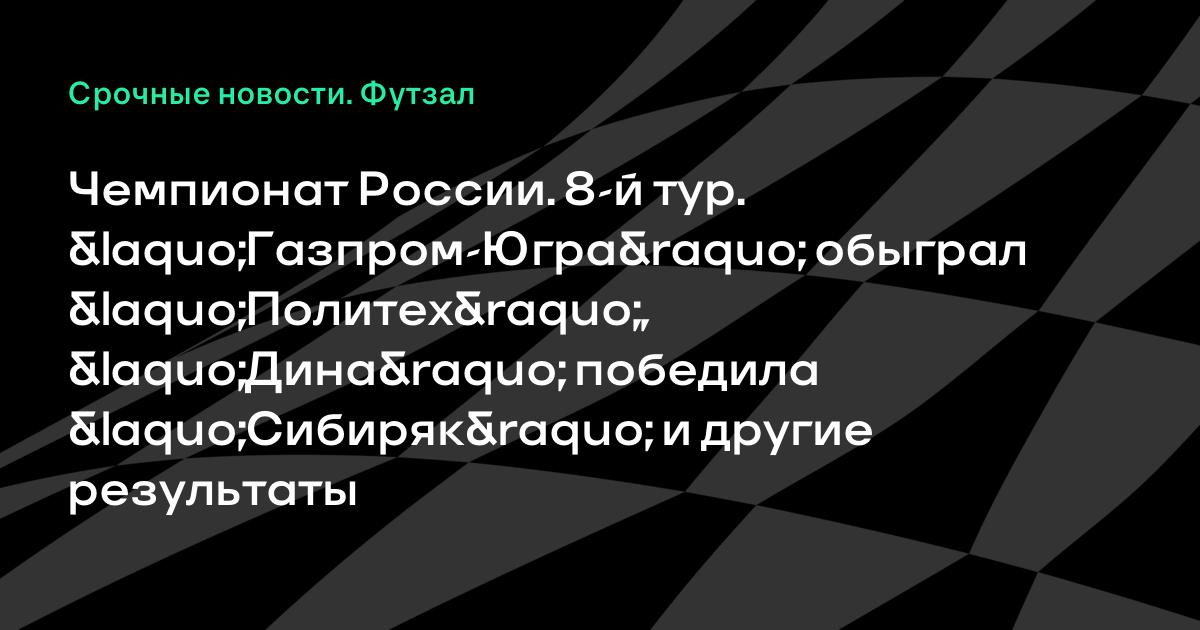 Чемпионат России. 8-й тур. «Газпром-Югра» обыграл «Политех», «Дина» победила «Сибиряк» и другие результаты