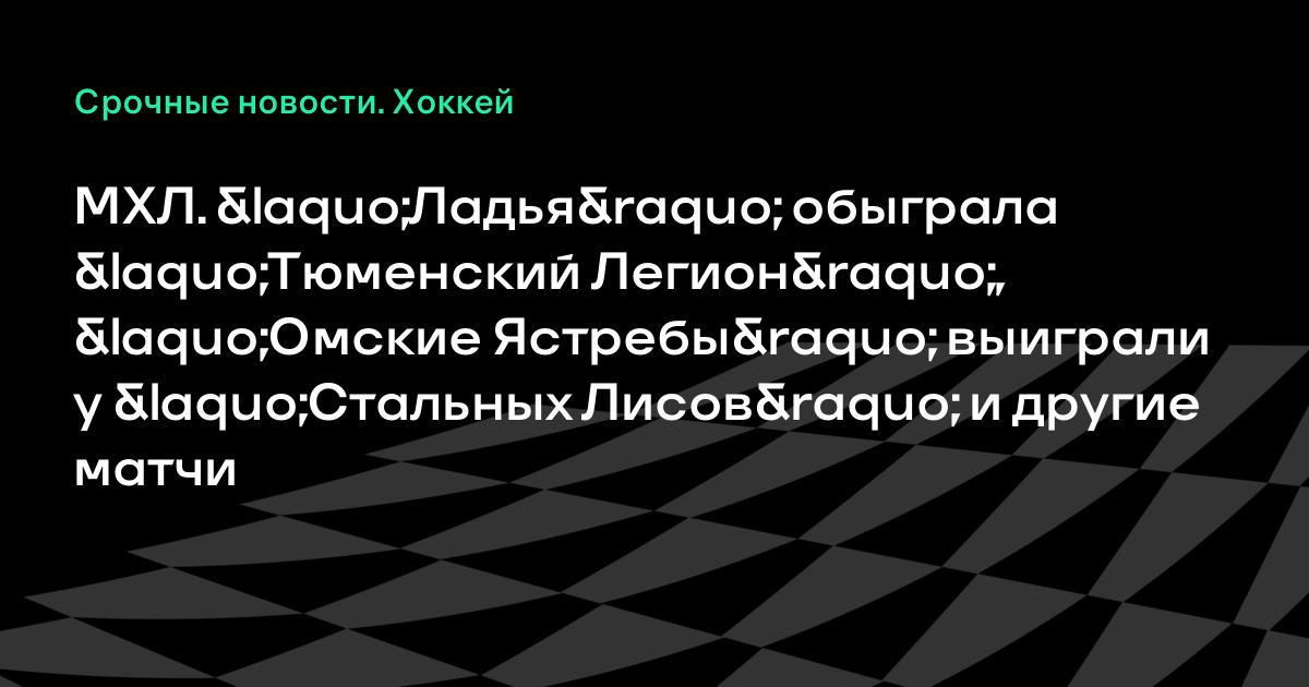 МХЛ. «Ладья» обыграла «Тюменский Легион», «Омские Ястребы» выиграли у «Стальных Лисов» и другие матчи