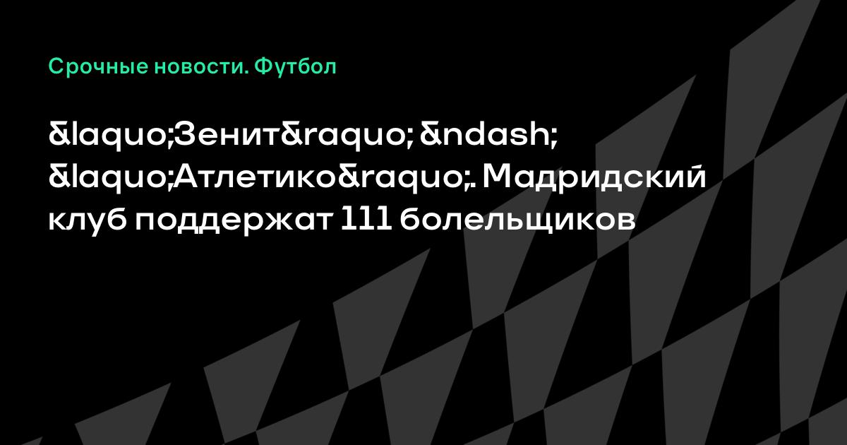 «Атлетико» во время матча с «Зенитом» на стадионе «Петровский» в Санкт-Петербурге поддержат 111 болельщиков, сообщает официальный сайт петербургского клуба.