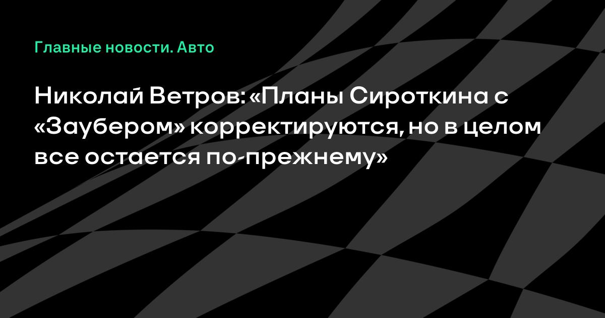 Николай Ветров: «Планы Сироткина с «Заубером» корректируются, но в целом все остается по-прежнему»