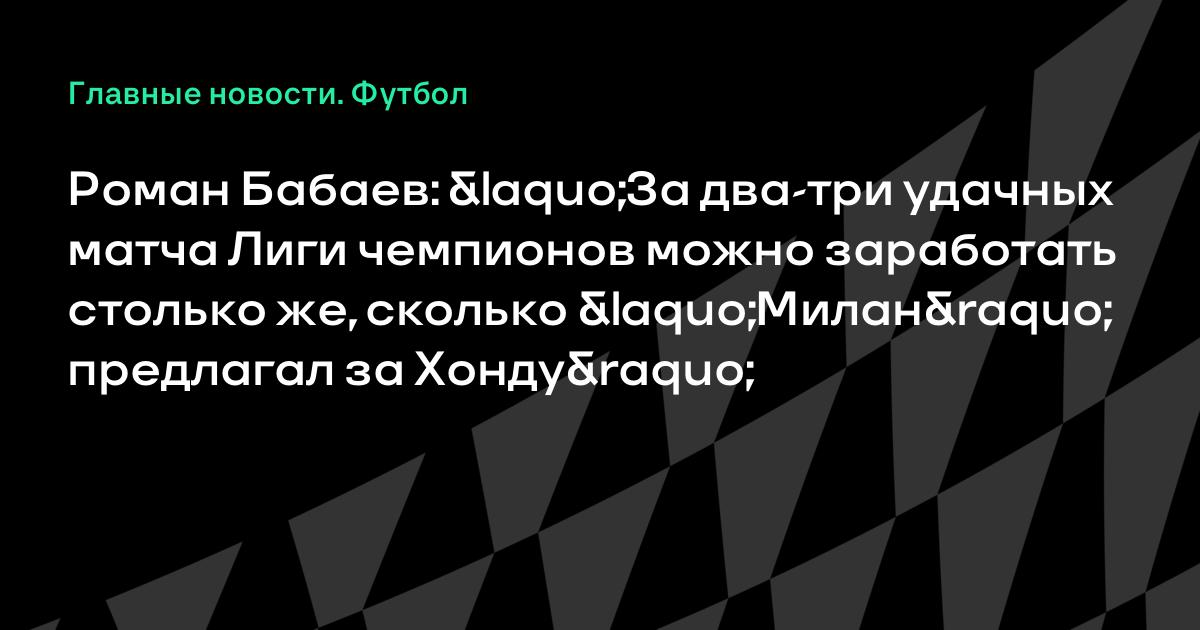Роман Бабаев: «За два-три удачных матча Лиги чемпионов можно заработать столько же, сколько «Милан» предлагал за Хонду»